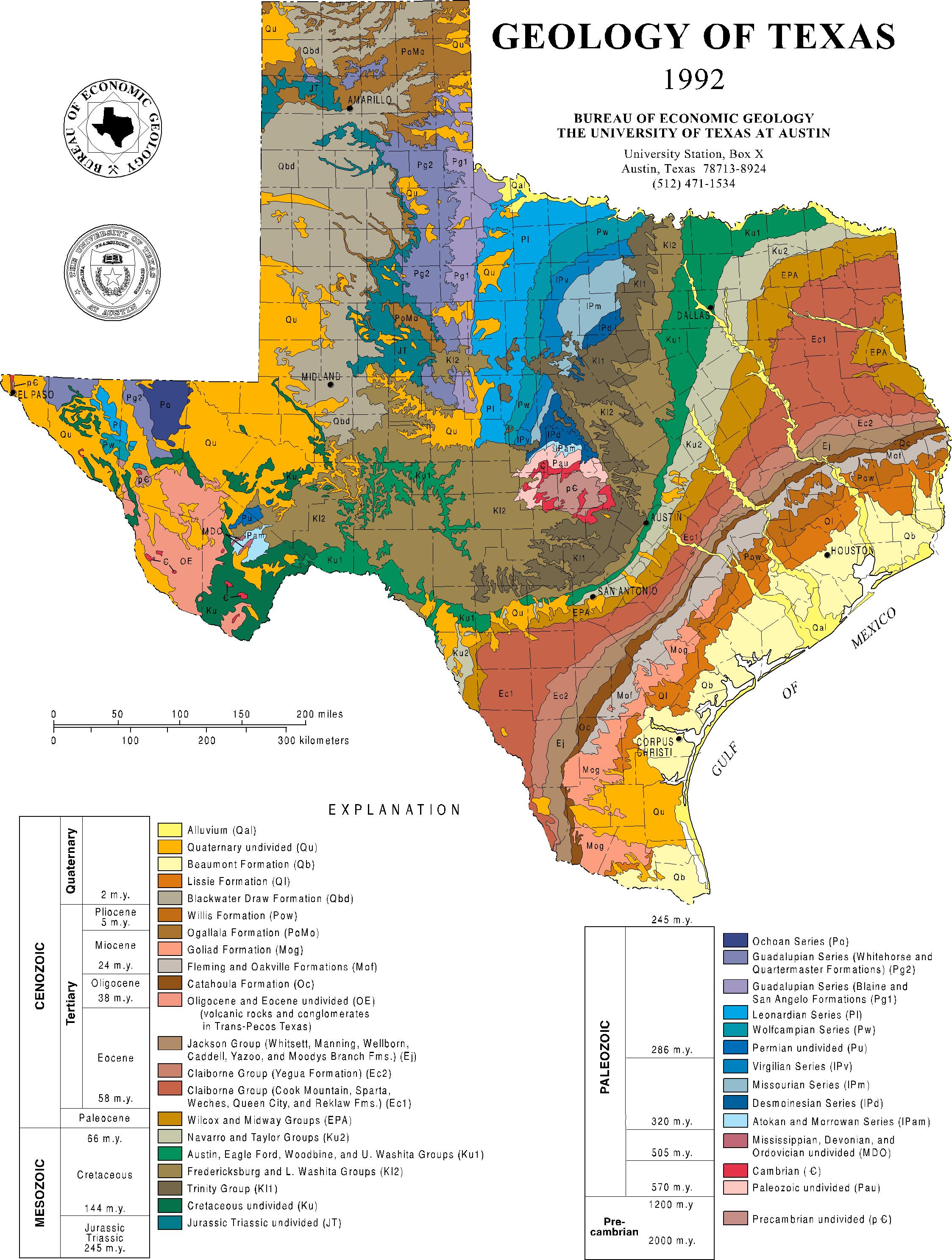 Geological survey allows users to explore the surface geology of texas and bordering regions of new mexico oklahoma and arkansas. Interactive map of the surface geology of texas this interactive map from the u s. The geologic database of texas was digitized from the geologic atlas of texas gat. Mountains seas coastal plains rocky plateaus high plains forests all of this physiographic variety in texas is controlled by the varied rocks and structures that underlie and crop out across the state.